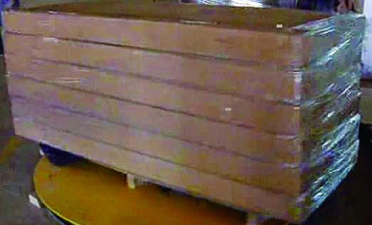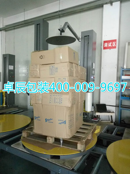 拉伸膜纏繞包裝機(jī)適用于堆放在棧板上的貨物進(jìn)行后